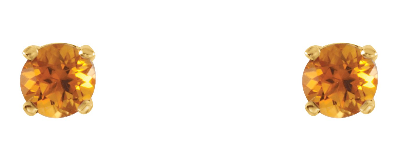 651643 / 14K Yellow / Set / Round / Imitation Citrine / Pair / 3 Mm / Threaded / Threaded Backs Included / 4-Prong / Polished / Youth Earrings With Backs